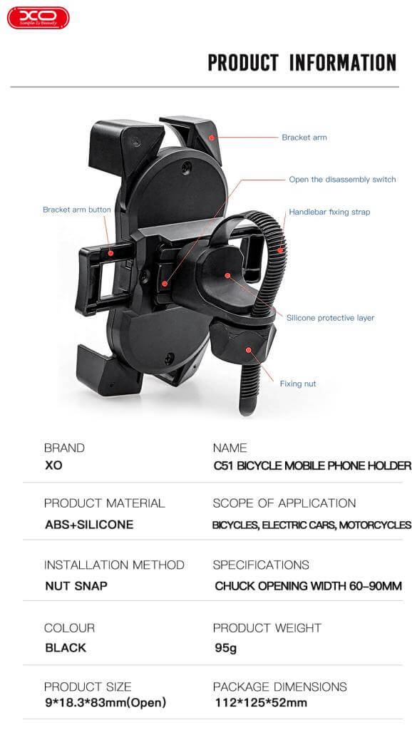 GSM холдер за велосипед XO C51 /черен/